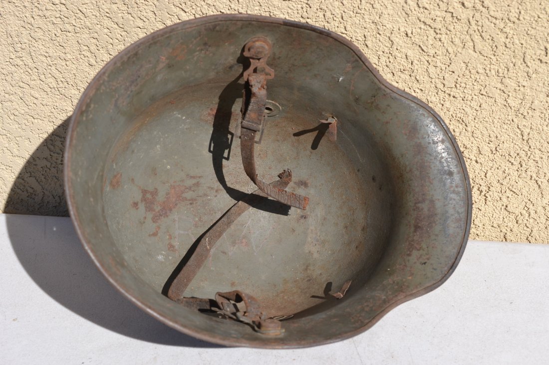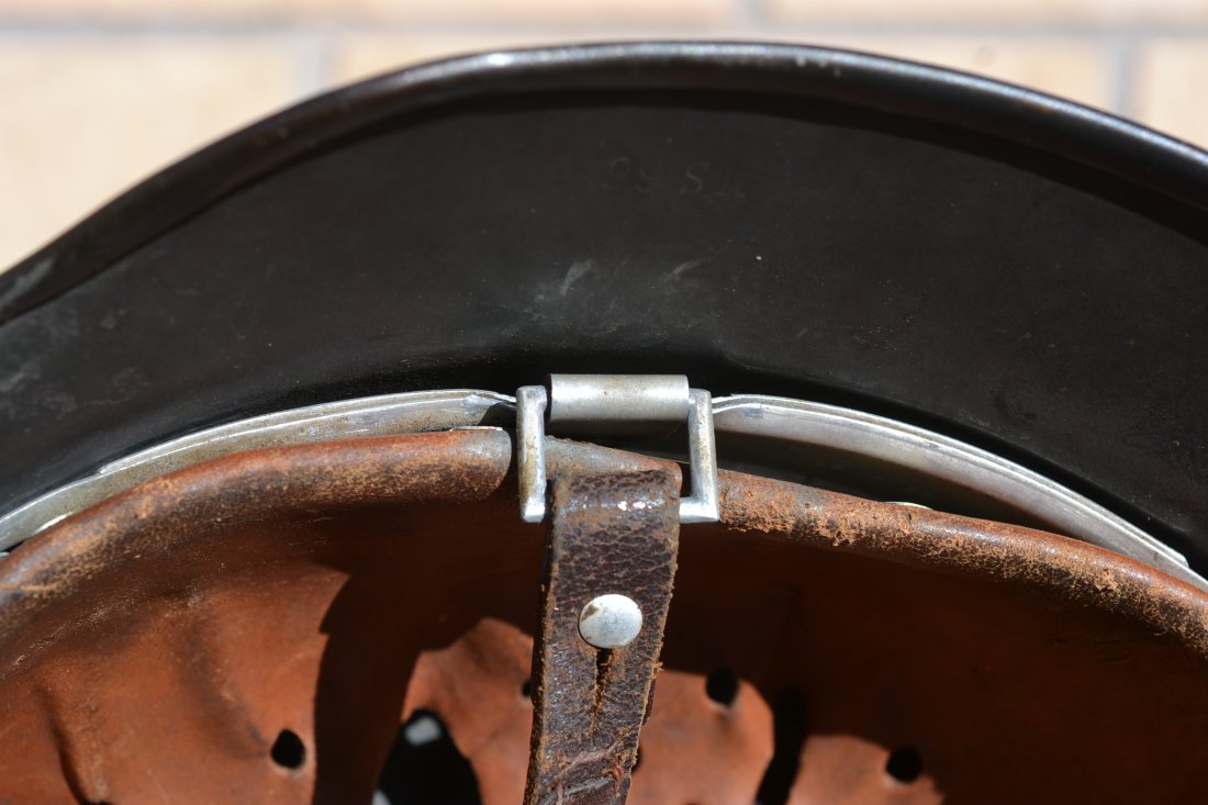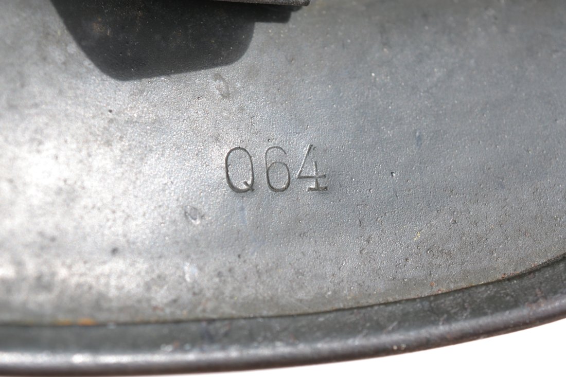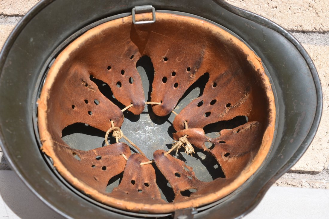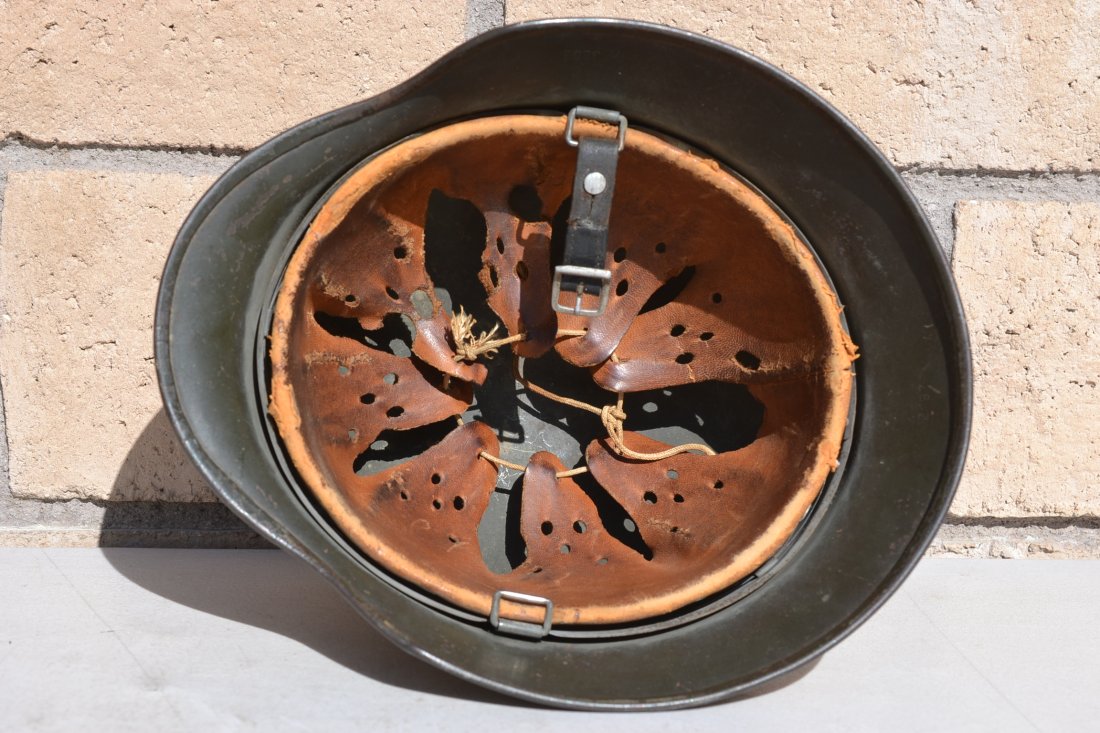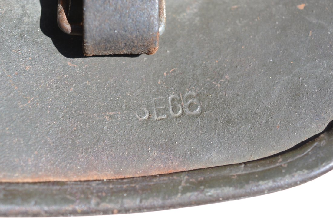 German WW2 M-40 single decal Heer BIG size SE.66. Liner band is to tight to read any stamps and all washers & pins are like they left the factory. Short chinstrap with aluminum buckle.