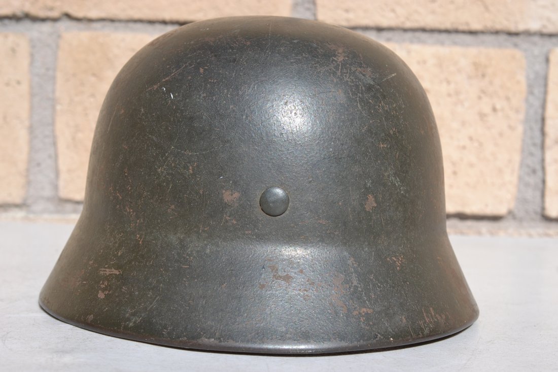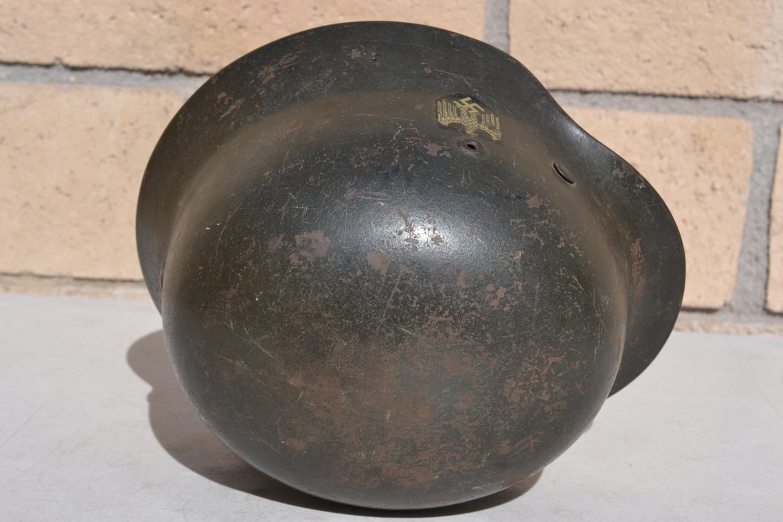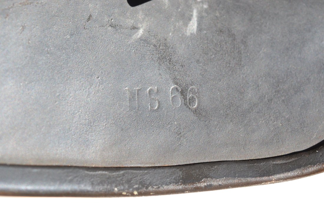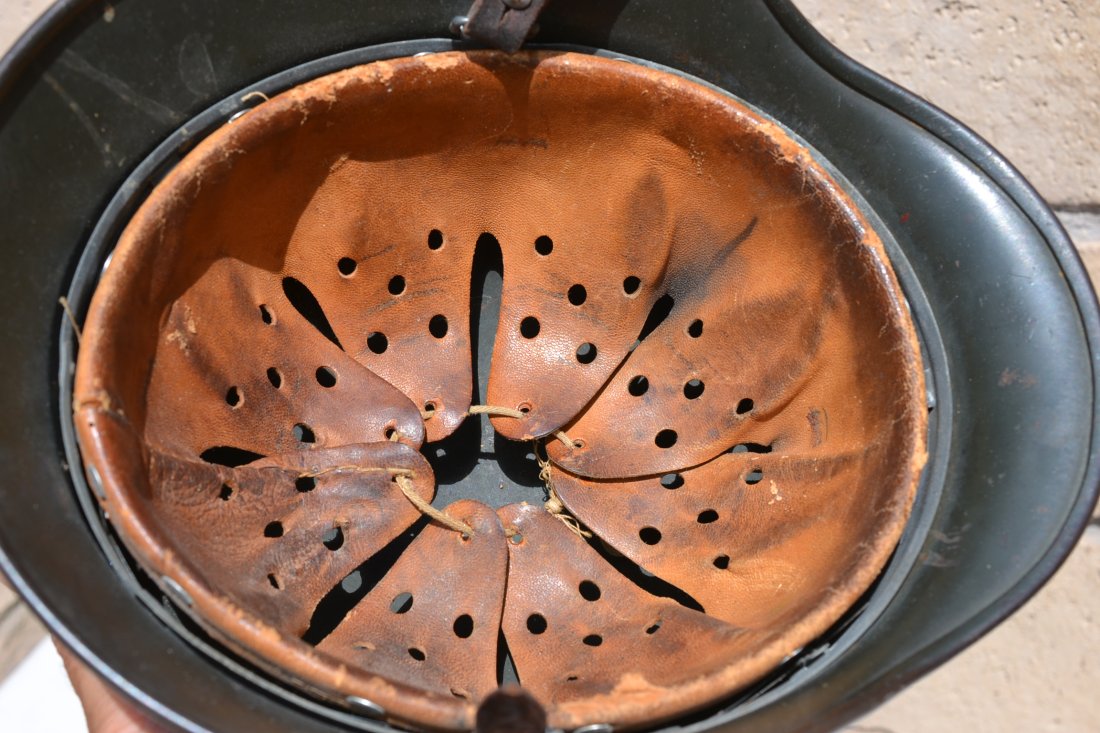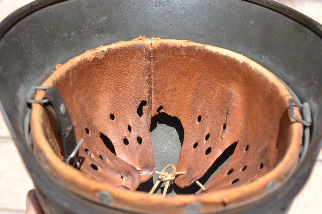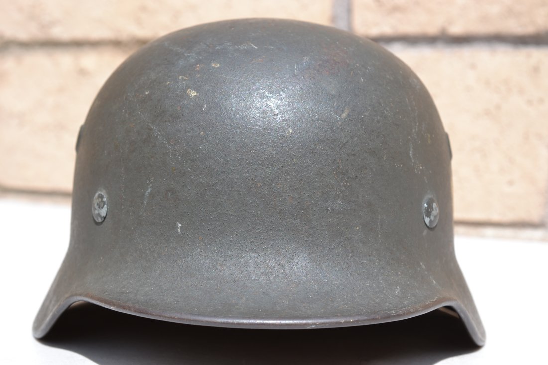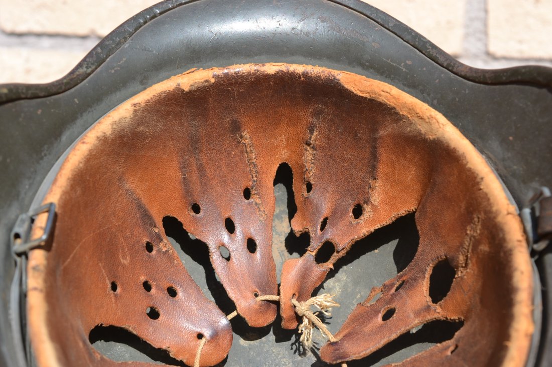 German WW2 M-40 single decal Heer BIG size SE.66. Liner band is to tight to read any stamps and all washers & pins are like they left the factory. Short chinstrap with aluminum buckle.