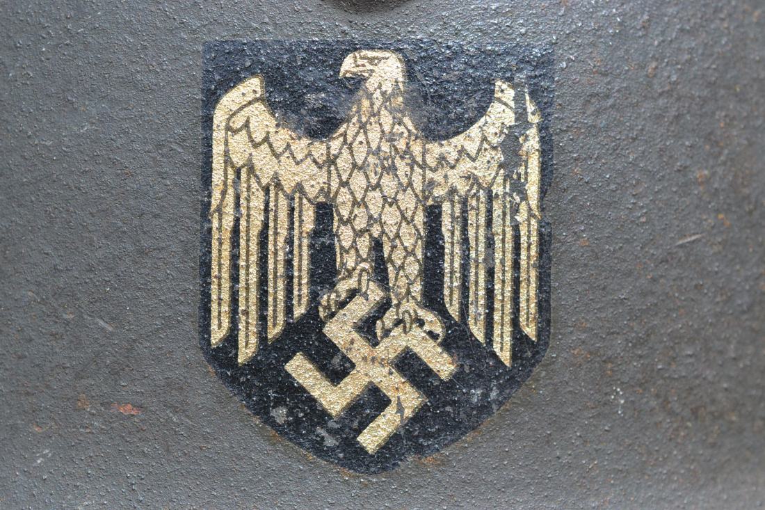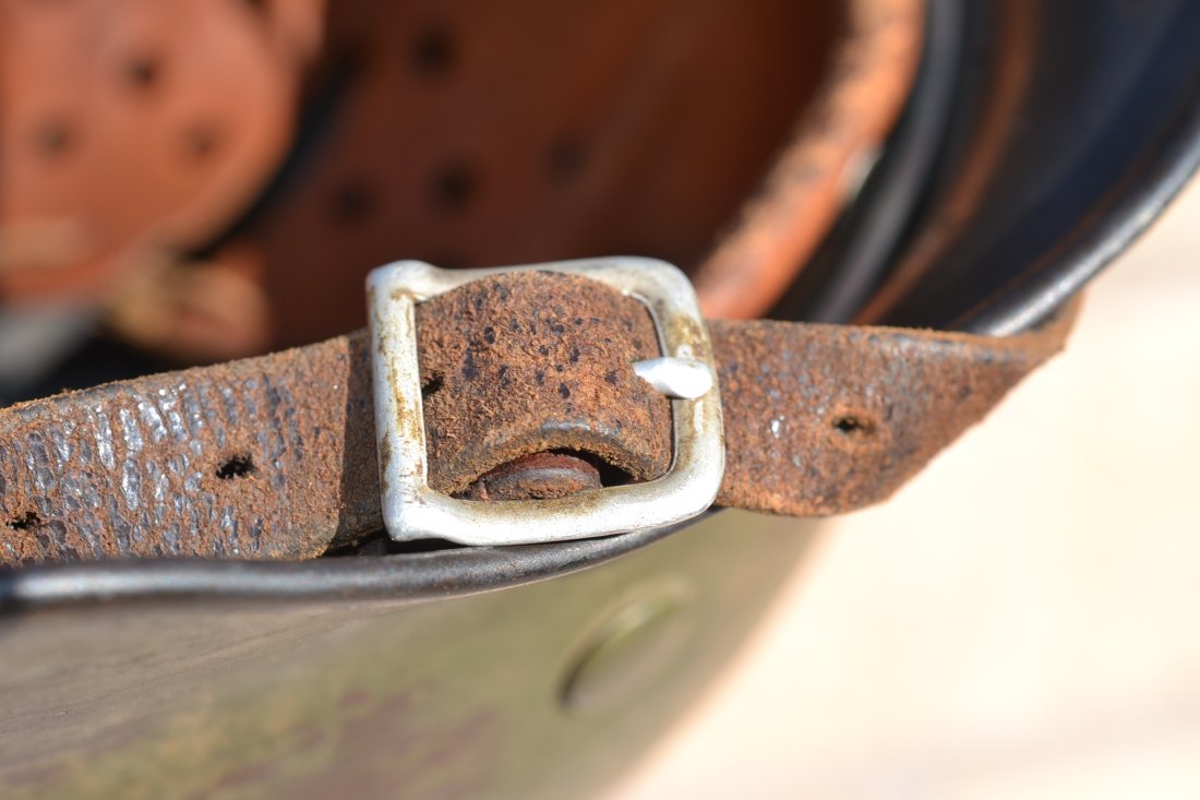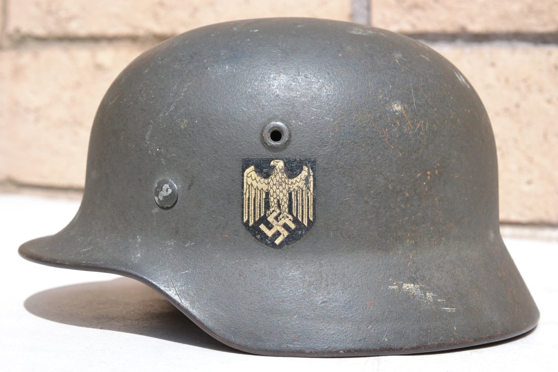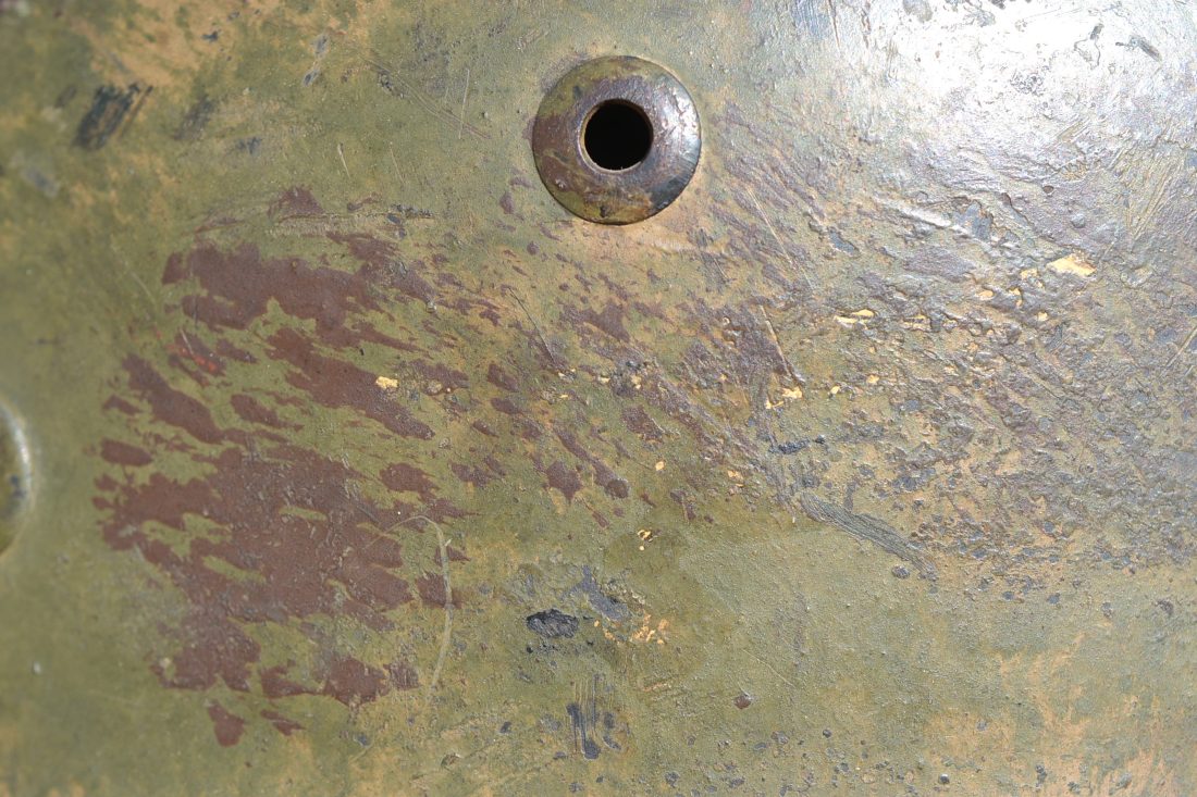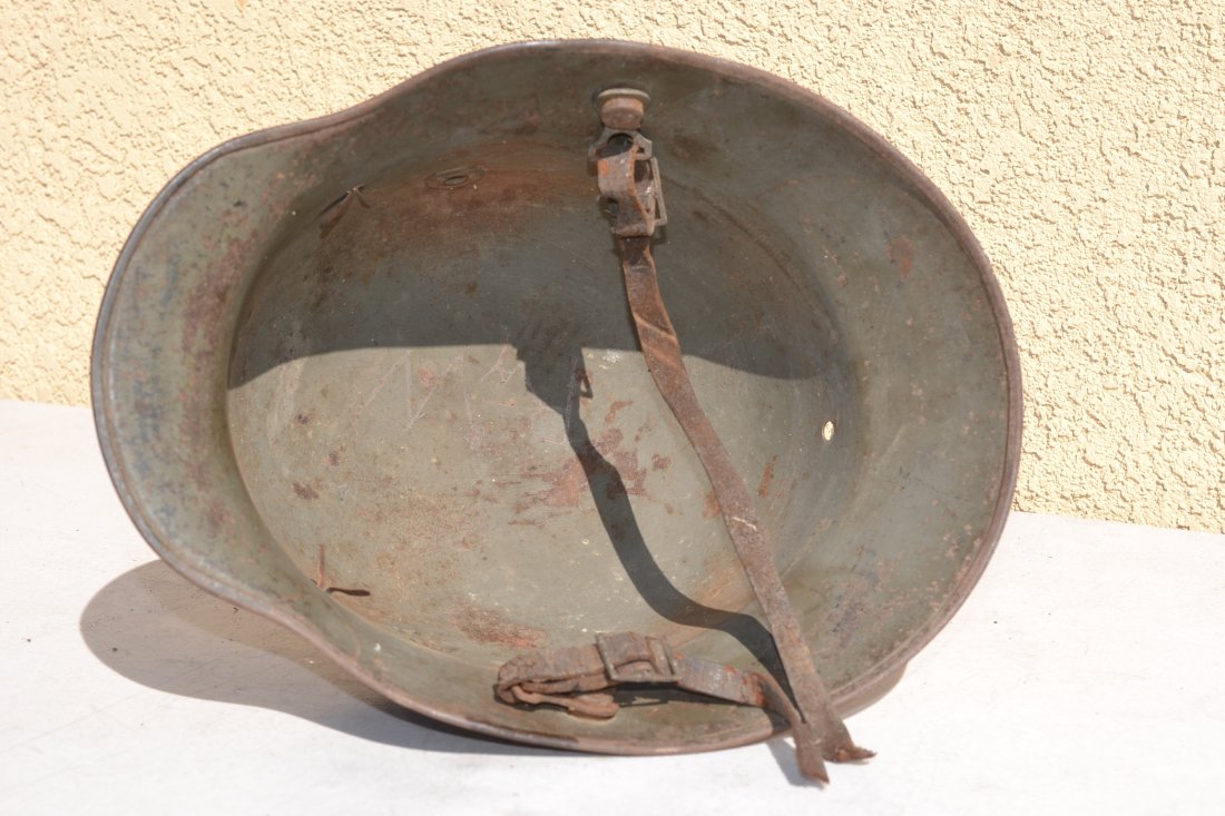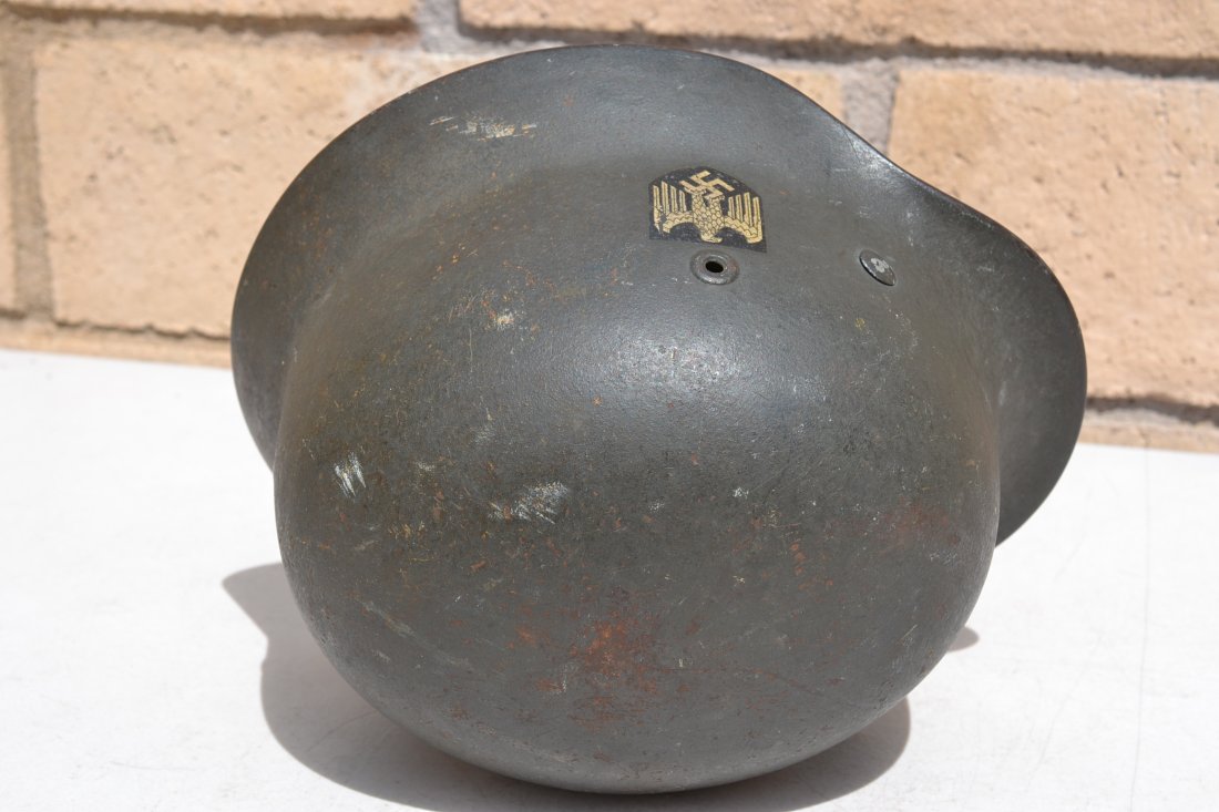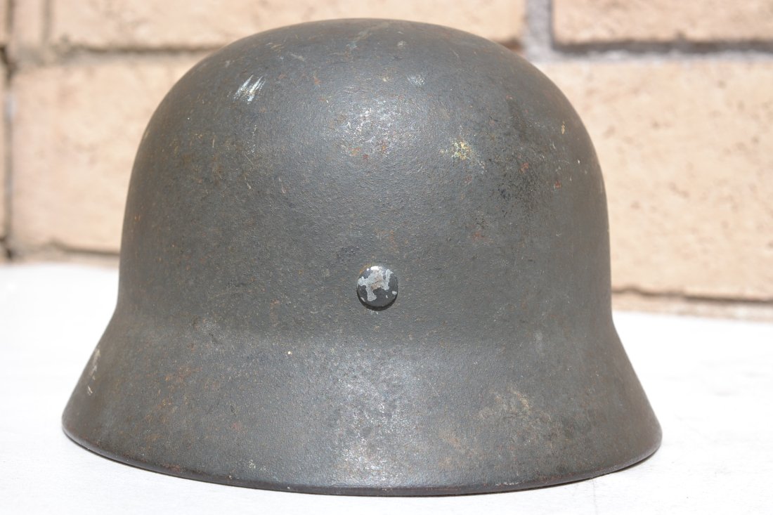 German WW2 M-40 single decal Heer BIG size SE.66. Liner band is to tight to read any stamps and all washers & pins are like they left the factory. Short chinstrap with aluminum buckle.