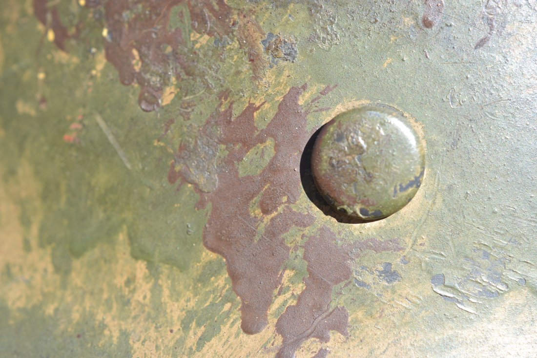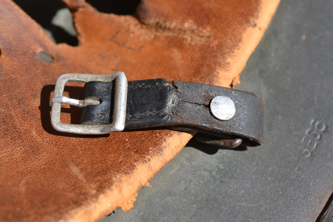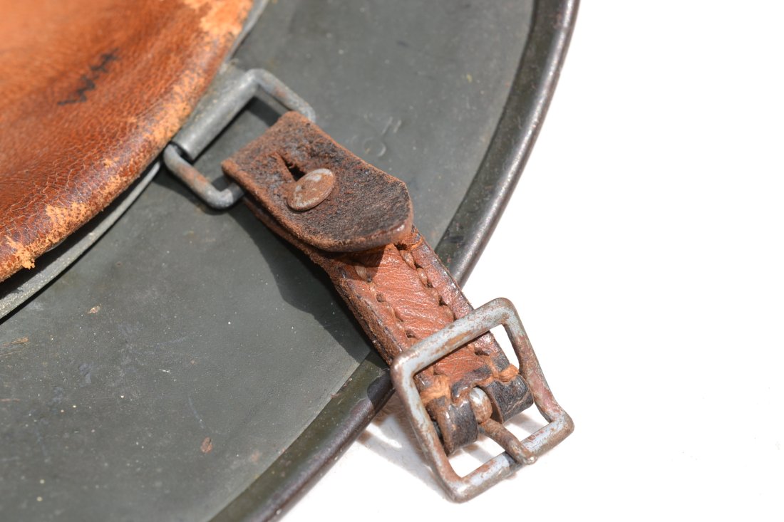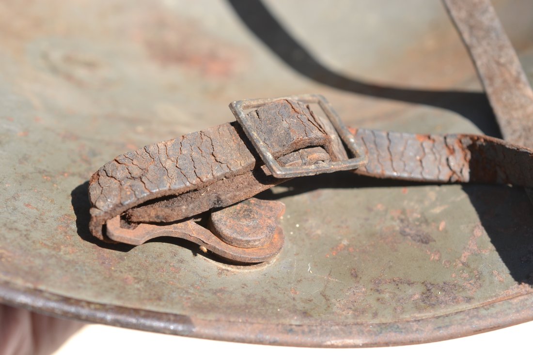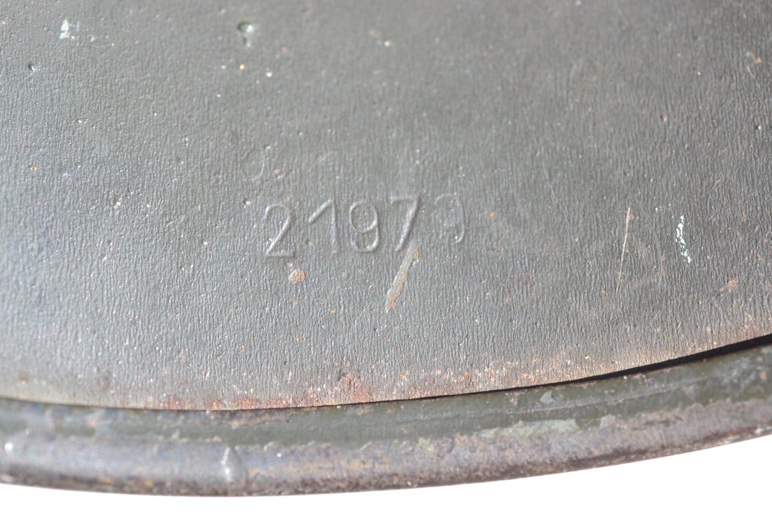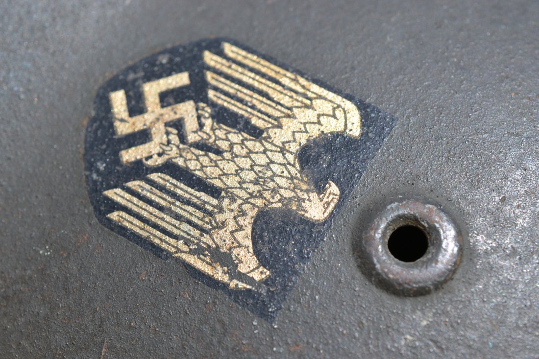 German WW2 M-40 single decal Heer BIG size SE.66. Liner band is to tight to read any stamps and all washers & pins are like they left the factory. Short chinstrap with aluminum buckle.