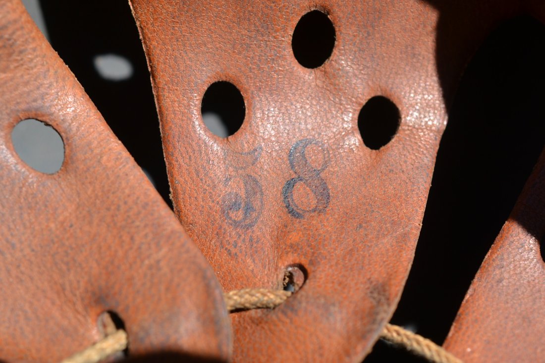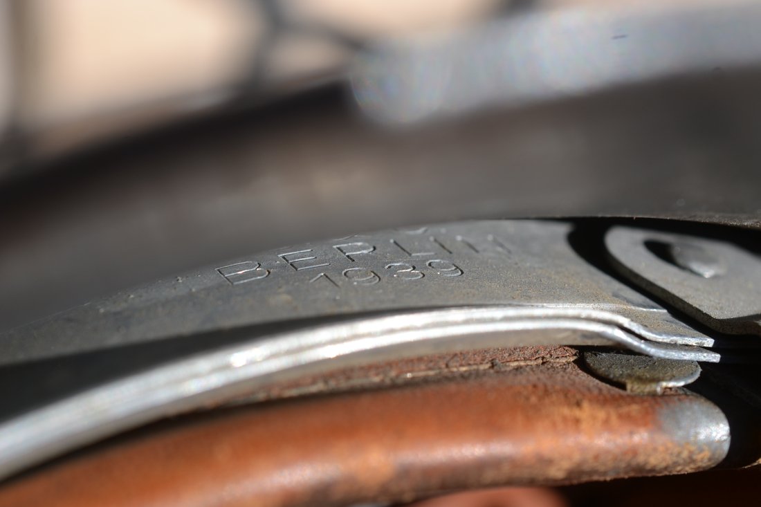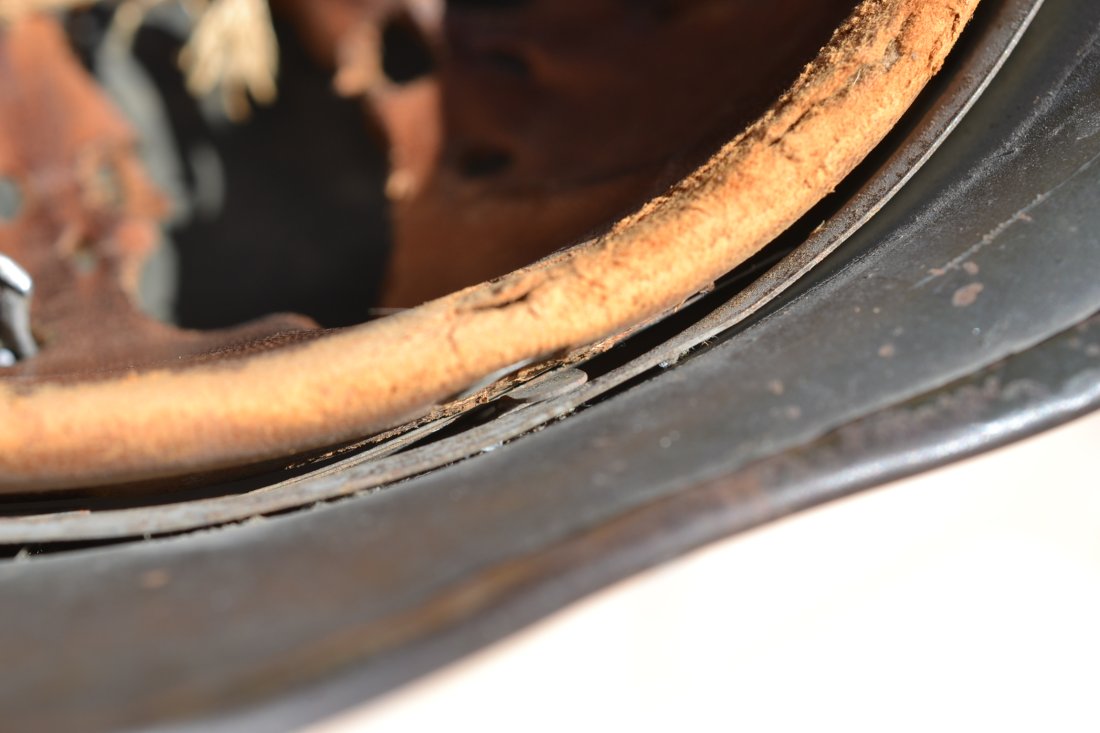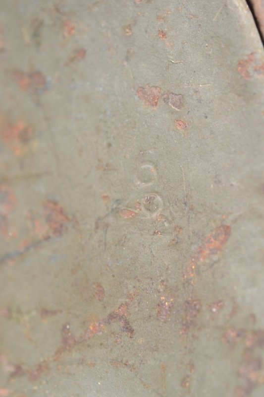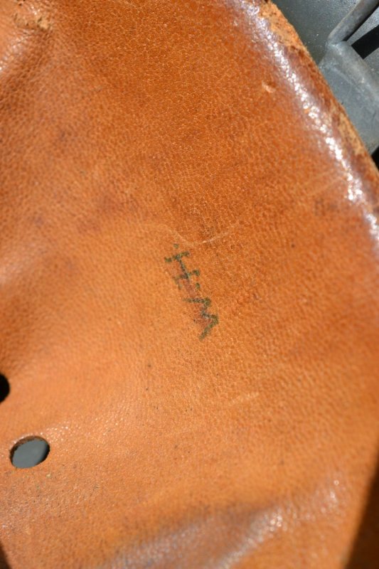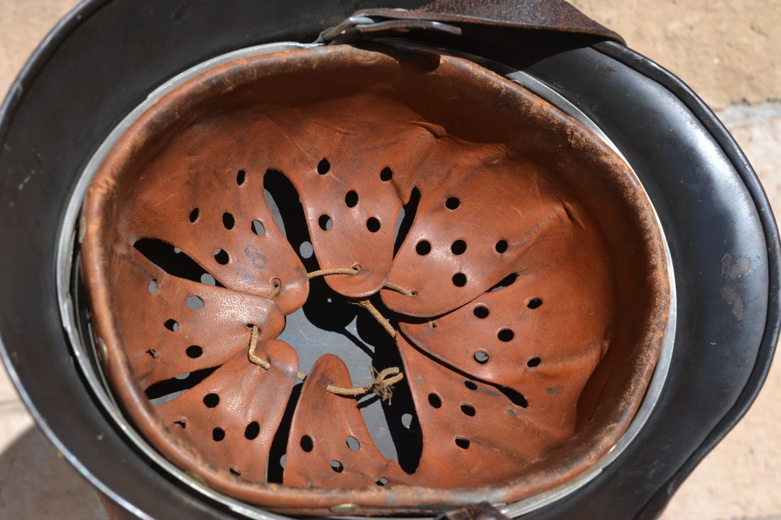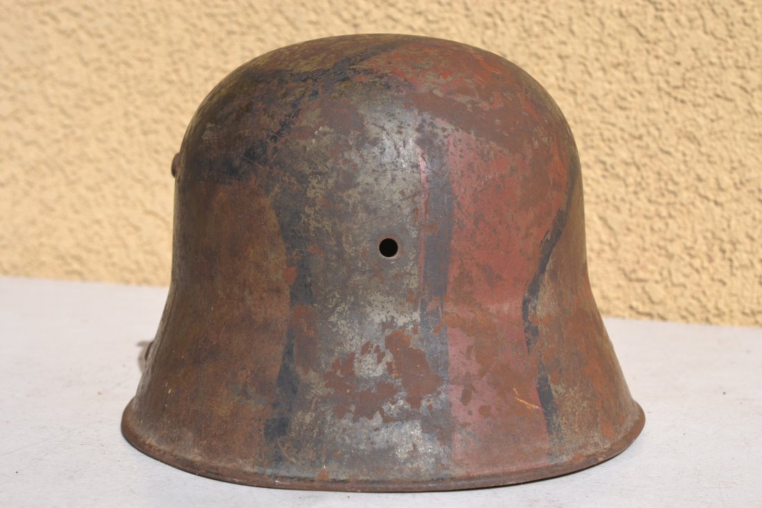 German WW2 M-35 Luftwaffe NS 66 lot # E.171. Beautiful hand painted splotches 3 colors camo with the LW eagle picking through the paint. Liner size 58 with band dated 1939.