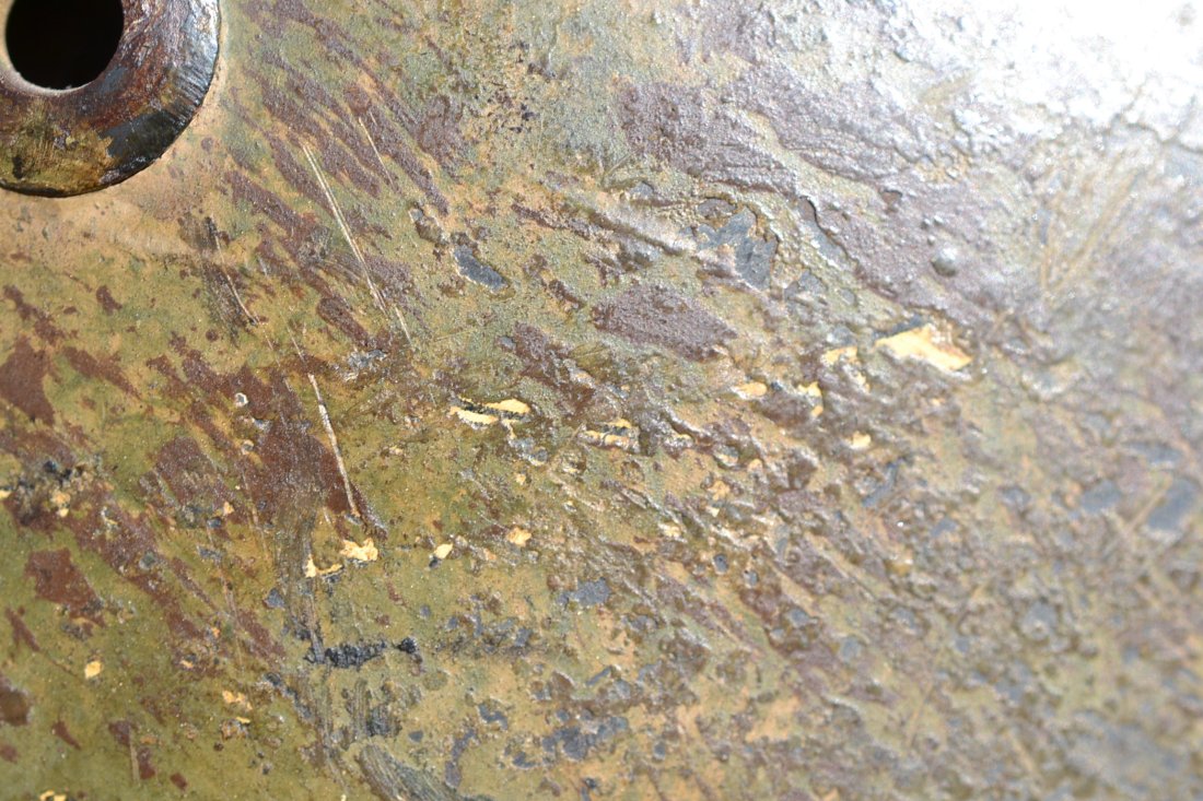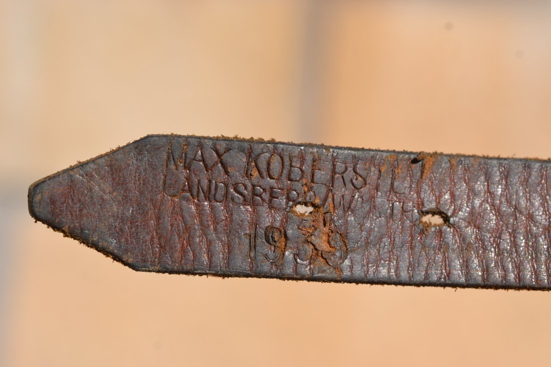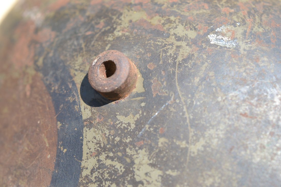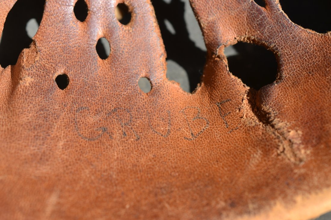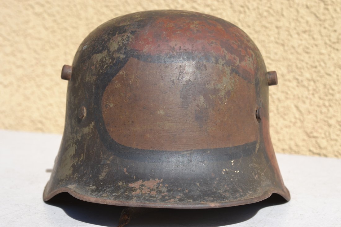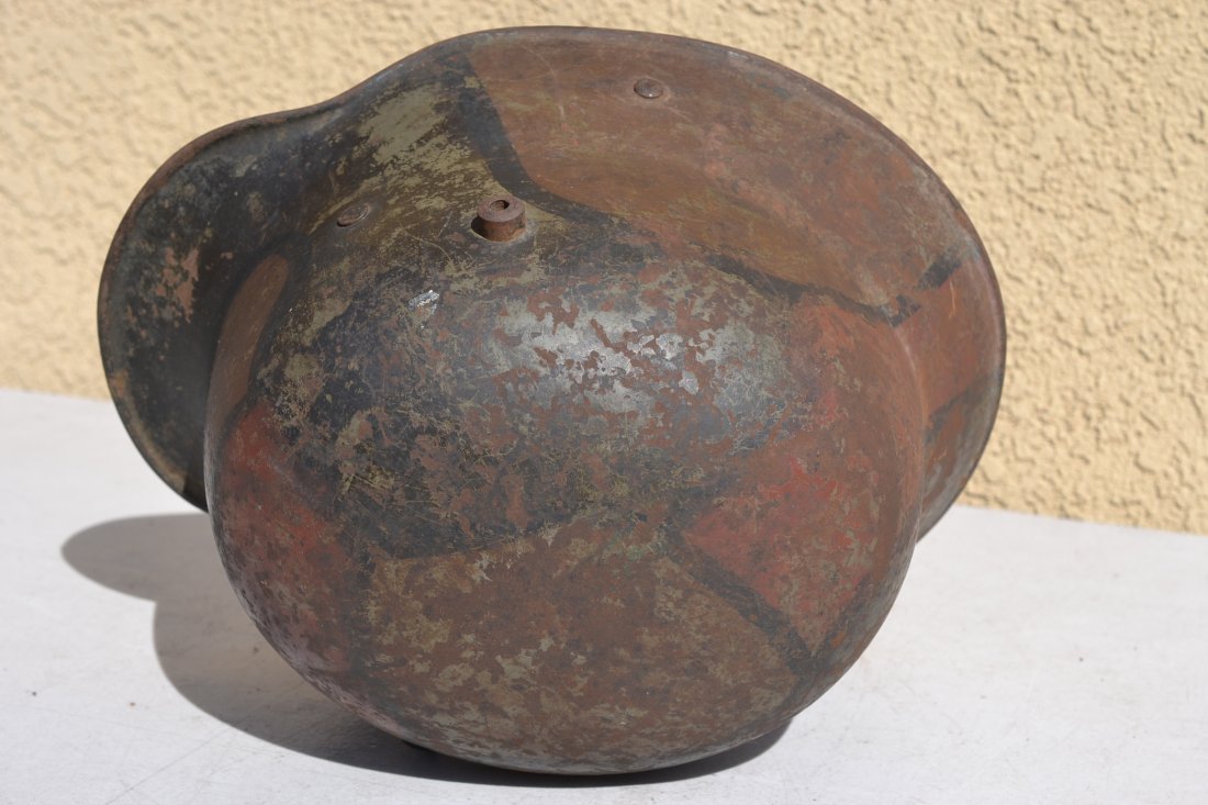 German WW1 Imperial army camouflage helmet. This is one camo you can tell immediately is the real deal, cannot make the maker stamp but is a size 66. The leather strap is there but is broken.
