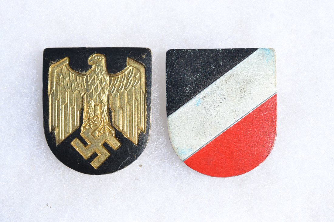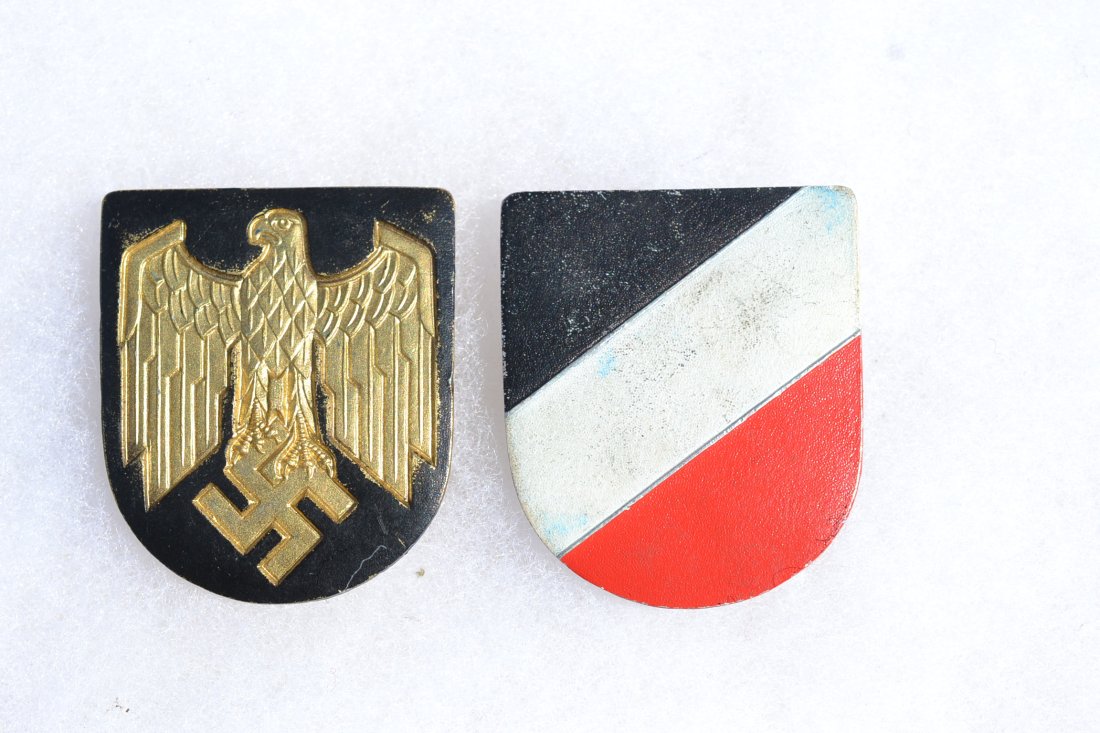 German WW2 matching set of kriegsmarine Africa tropical pith helmet shields. Maker stamp G.B.41 (1941)