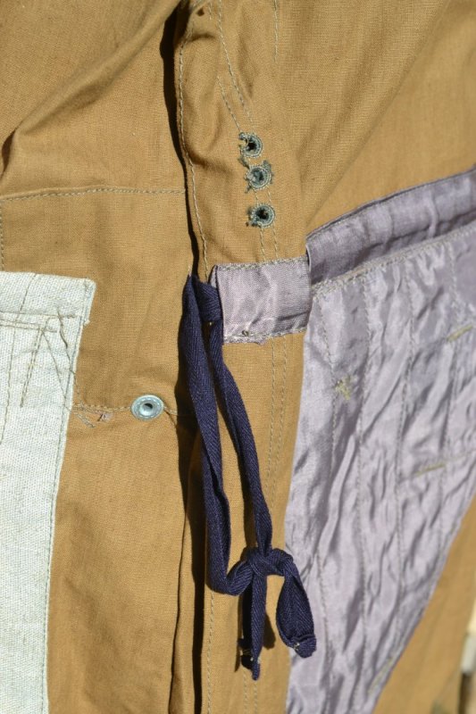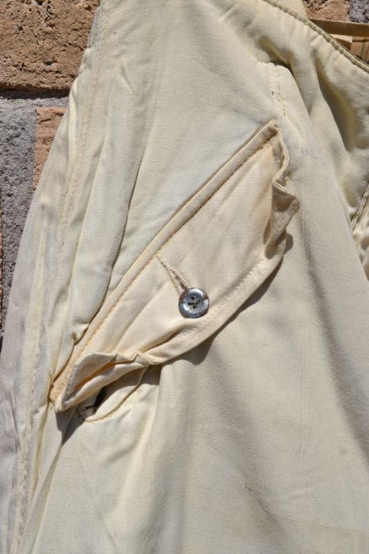German Fallschirmjaeger camoflage tan/water jump smock “Tarnung Fallschirmschützenbluse “. Not the usual minty this one was for sure in service and has a great combat look. The top glass button is loose and was inside one pocket.